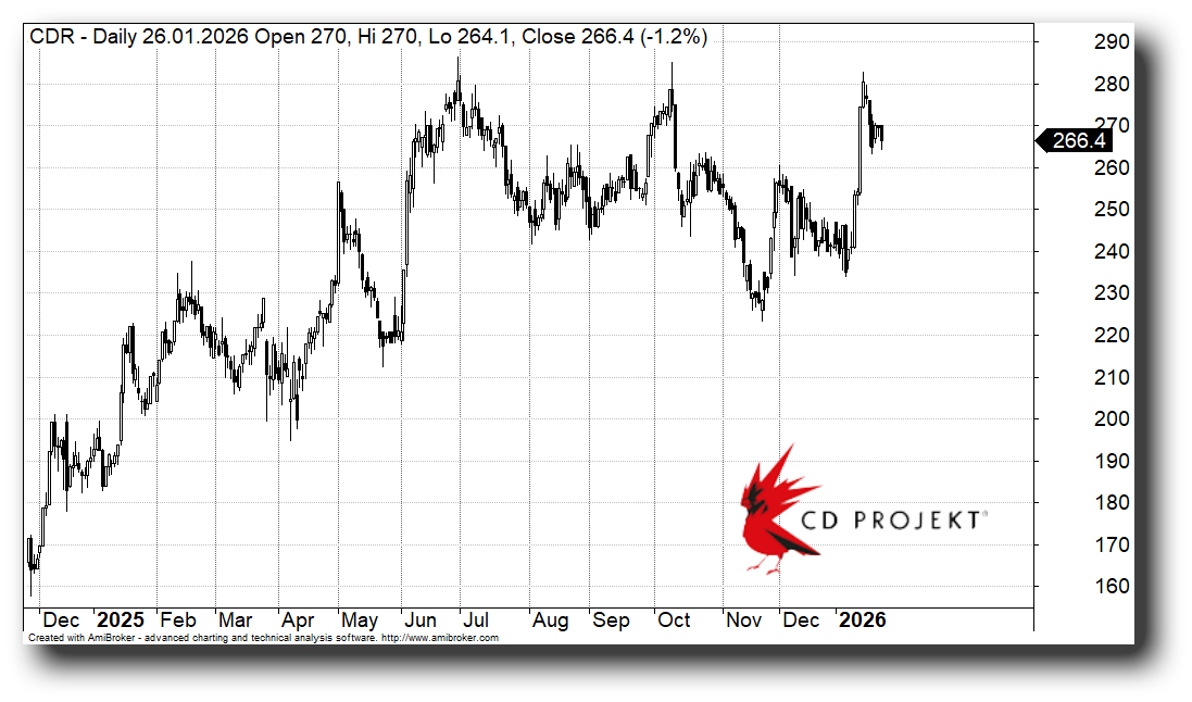 Kurs akcji CD PROJEKT od początku 2026