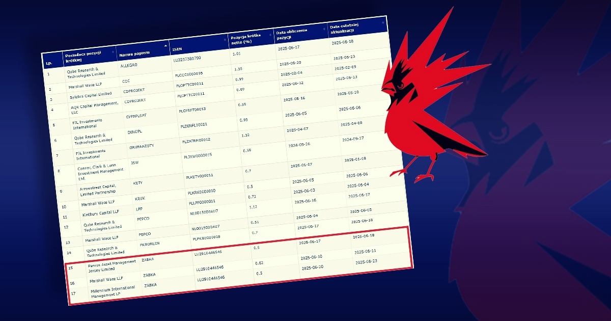 Przez wiele miesięcy w rejestrze krótkich pozycji Komisji Nadzoru Finansowego (KNF) najwięcej transakcji dotyczyło twórcy Wiedźmina 3 czy Cyberpunka. W ostatnich dniach liderem rejestru pod względem liczby pozycji zostały walory Żabki.