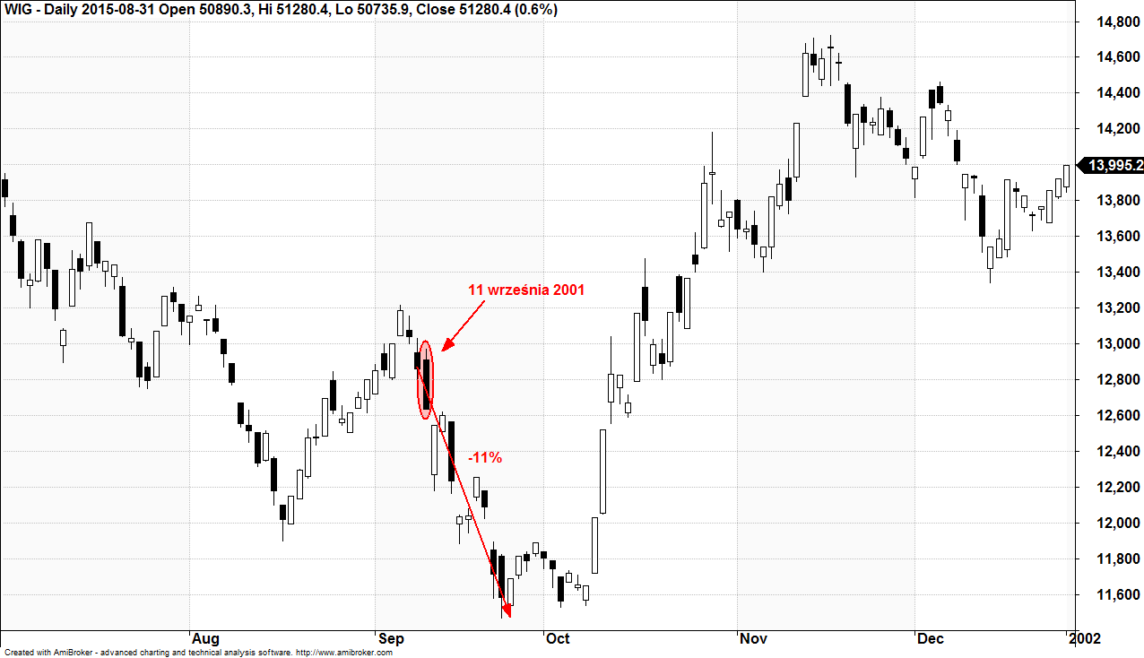 Dzisiaj, z perspektywy czasu, wiem, że polski rynek giełdowy we wrześniu 2001 roku był w przededniu historycznej hossy. Kiedy trwały wydarzenia, dokładnie 14 lat temu, inwestorom wydawało się, że to koniec świata. Co prawda reakcja polskiego rynku była dość skromna względem tej w USA, ale spadki były równie dotkliwe. Inwestorzy, którzy byli na tyle odważni, aby kupować akcje w trakcie paniki później raczej tego nie żałowali.