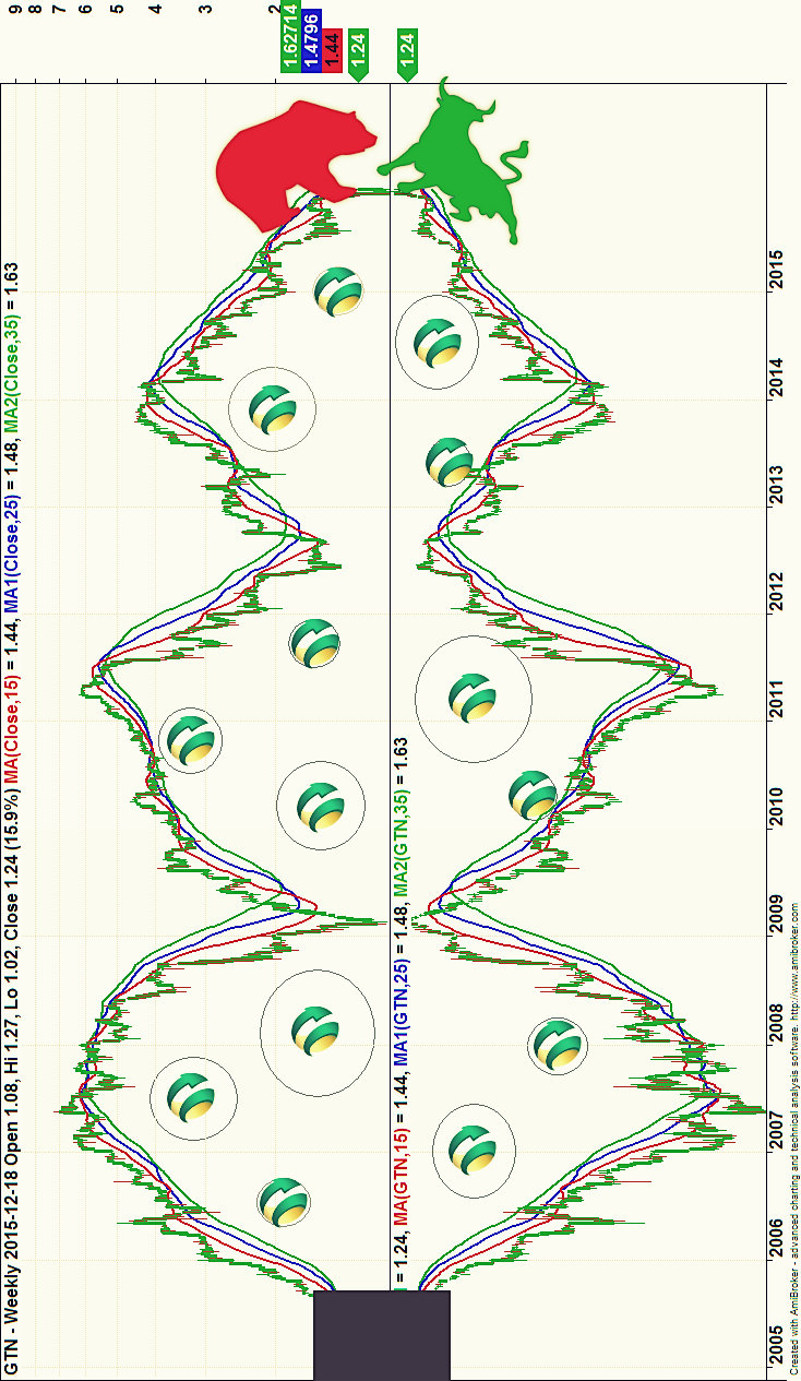 Jeśli połączymy dwa wykresy akcji Getin Holding za lata 2005-2015 (jeden odwrócony) i postawimy je pionowo, to otrzymujemy piękną formację „Świerk Czarneckiego”. To niewątpliwie znak, że idą Święta!