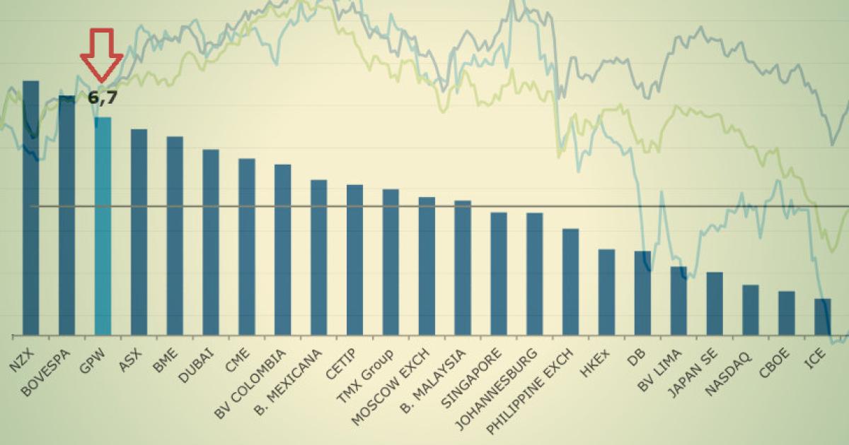 Jeżeli GPW miałaby wypłacić w tym roku tyle samo zysku na akcję, co w 2015 roku to stopa dywidendy oscylowałaby w okolicy 6%. Lepsze wyniki dają szansę, że dywidenda może być wyższa. Na tle konkurencyjnych giełd jest to jeden z najwyższych wyników na świecie. Pod tym względem lepiej od GPW wypada jedynie brazylijska Bovespa i nowozelandzki NZX.