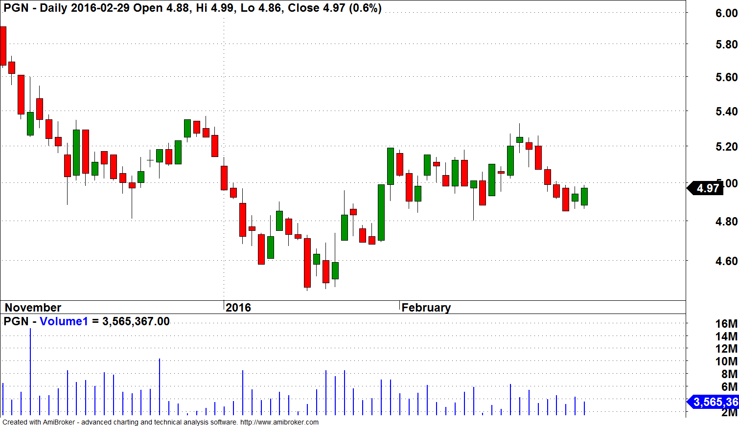 W zeszłym tygodniu w analizie napisałem, że zamknięcie dnia powyżej 5.20 zł generuje sygnał otwarcia długiej pozycji ze stop loss na poziomie 4.91 zł i zasięgiem minimalnym na 5,78 zł na akcjach PGNiG. Ten sygnał jest nadal aktualny i jest zaliczany do kategorii tzw. sygnałów pewnych.
