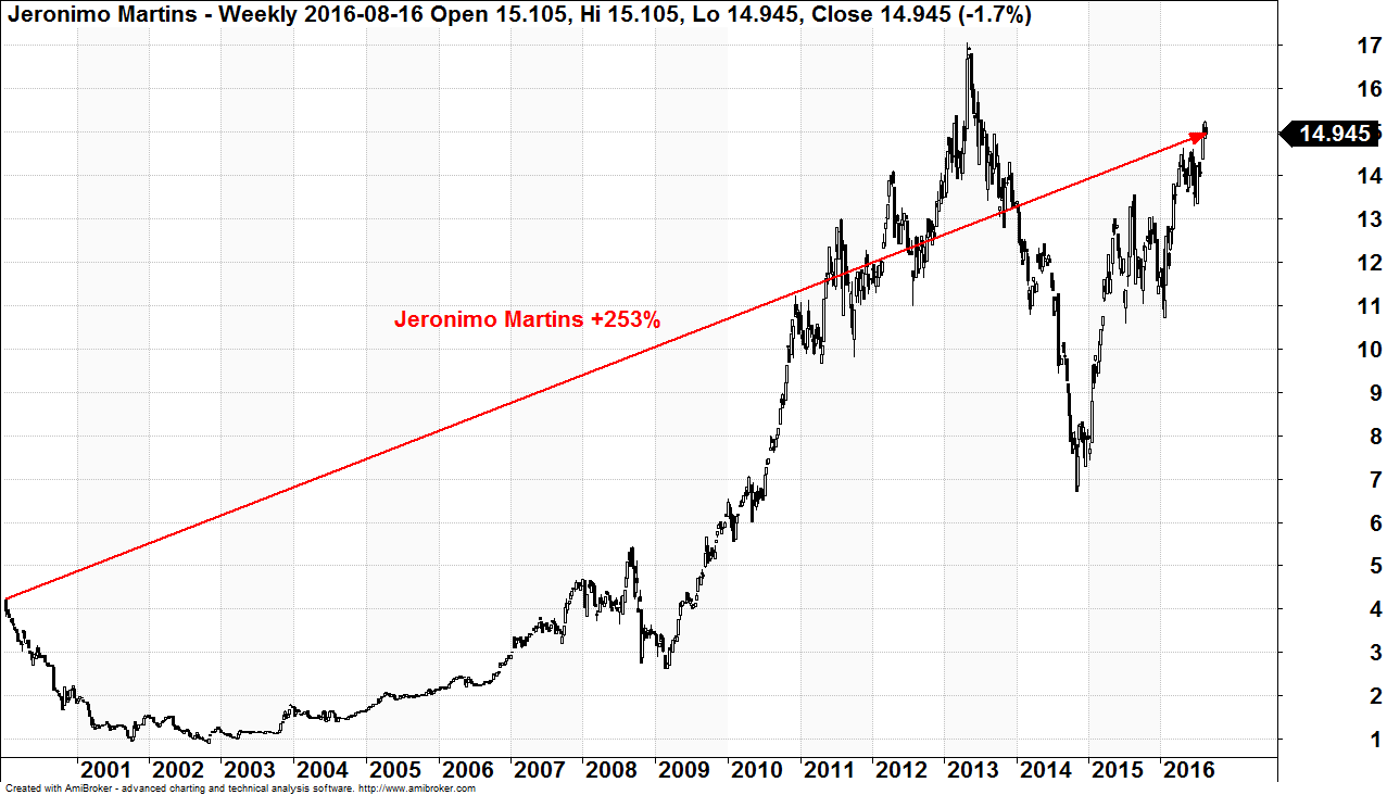 Wykres 5: Kurs akcji Jeronimo Martins, lata 1999 – 2016.