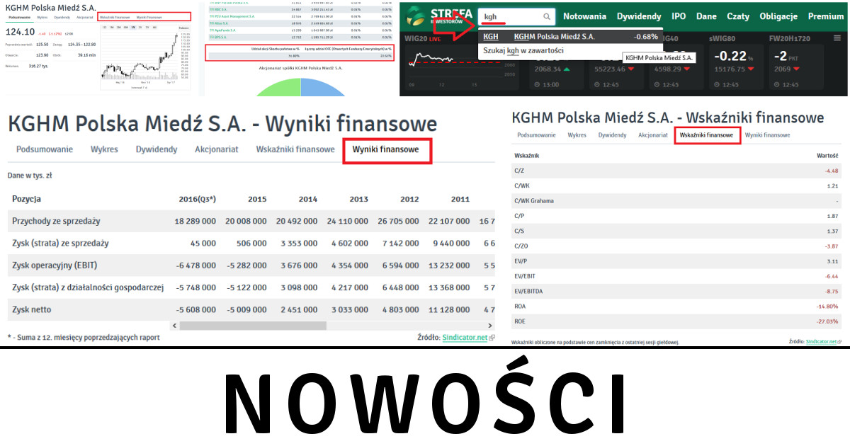 Wyniki finansowe spółek notowanych na GPW oraz ich aktualne wskaźniki finansowe to najważniejsze nowości, jakie w ostatnim czasie udało się wprowadzić do Strefy Inwestorów. Konsekwentnie kontynuujemy prace związane z rozbudową profili spółek z polskiej giełdy. Oto lista najważniejszych zmian i nowości.