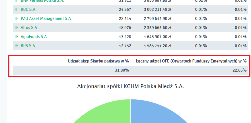 Widok 5: Akcjonariat spółki KGHM w serwisie Strefa Inwestorów