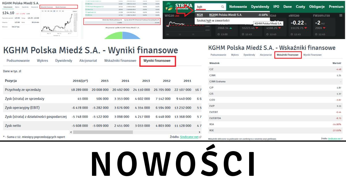 Widok 2: Wskaźniki finansowe dla KGHM w serwisie Strefa Inwestorów