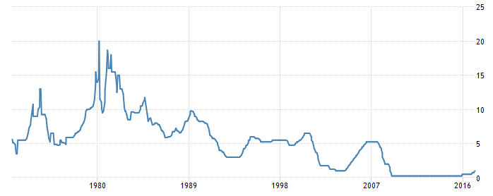 Wykres 1. Wysokość głównej stopy procentowej w USA