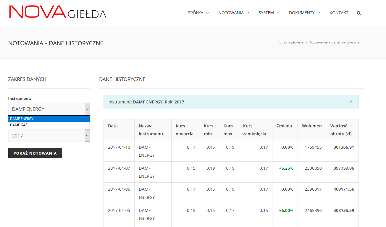 Jak wynika z informacji zamieszczonych na stronie Nova Giełda, notowane są na niej w tym momencie dwa podmioty DAMF Enery i DAMF Gaz. Nowy rynek istnieje jednak dopiero od około miesiąca. Przedstawiciele Nova Giełda poinformowali nas, że trwają obecnie rozmowy z dużymi podmiotami, które chcą na nim zadebiutować. W najbliższym czasie przeprowadzona zostanie też szeroka kampania informacyjna.