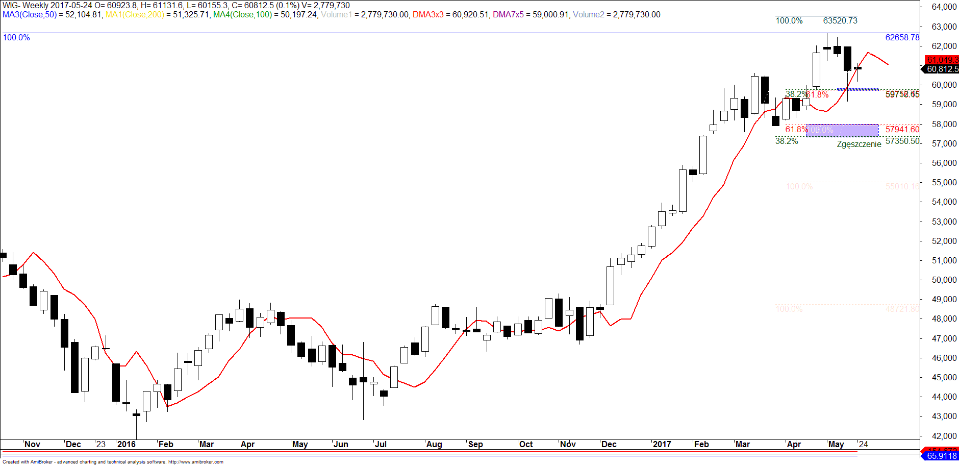 Tak silny opór atakowany od początku roku może w końcu sprowokować podaż wyzwalając falę spadkową. Dopiero ewentualne wybicie oporu zaneguje scenariusz spadkowy.