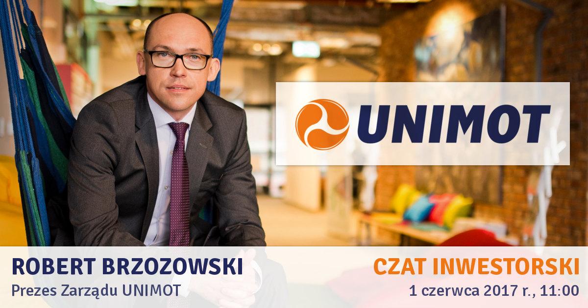 Zapraszamy na czat inwestorski z Prezesem spółki UNIMOT – Robertem Brzozowskim, w trakcie którego nasz gość chętnie odpowie na wszystkie pytania na temat wyników finansowych za I kwartał 2017 r., prowadzonych inwestycji m.in. w rozwój sieci stacji paliw AVIA w Polsce, czy aplikację Tankuj24 oraz o przyszłości spółki i rynku paliwowo-energetycznego.