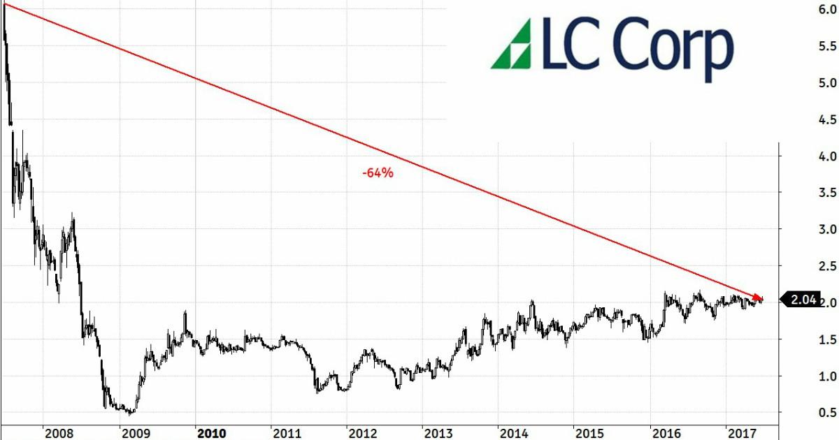 Podczas debiutu 29 czerwca 2007 roku, na samym szczycie hossy, wycena LC Corp sięgała 3 mld zł. Obecnie kapitalizacja dewelopera kontrolowanego przez Leszka Czarneckiego wynosi około 904 mln zł. W ciągu 10 lat do IPO cena waloru poszła w dół o 64 proc.