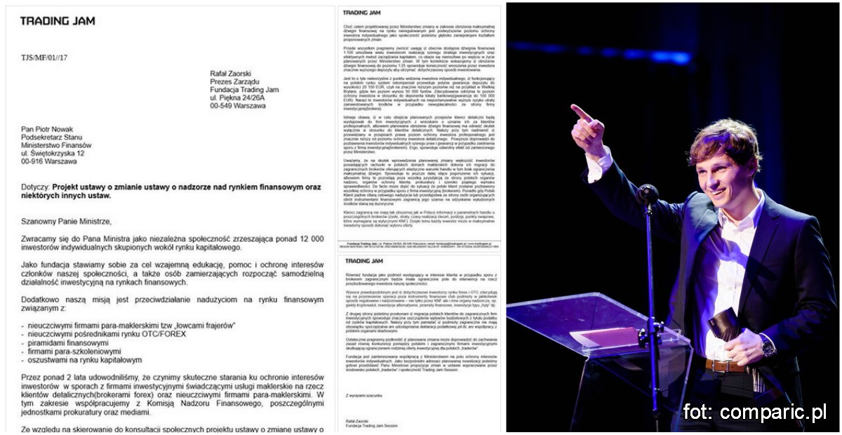 W związku z Projektem ustawy o zmianie ustawy o nadzorze nad rynkiem finansowym i niektórych innych osób, Fundacja Trading Jam Session, zrzeszająca ponad 12 000 inwestorów indywidualnych, wystosowała do Ministerstwa Finansów pismo z prośbą o włączenie jej w proces konsultacji społecznych oraz spotkanie, na którym chciałaby omówić planowane zmiany.