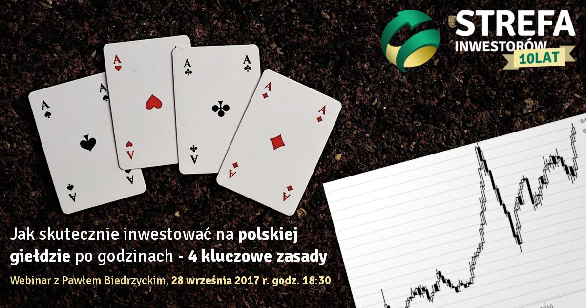 Zapraszam na bezpłatny webinar: Jak skutecznie inwestować na polskiej giełdzie po godzinach - 4 kluczowe zasady. Spotkanie odbędzie się w czwartek, 28 września 2017 r. o godz. 18:30.