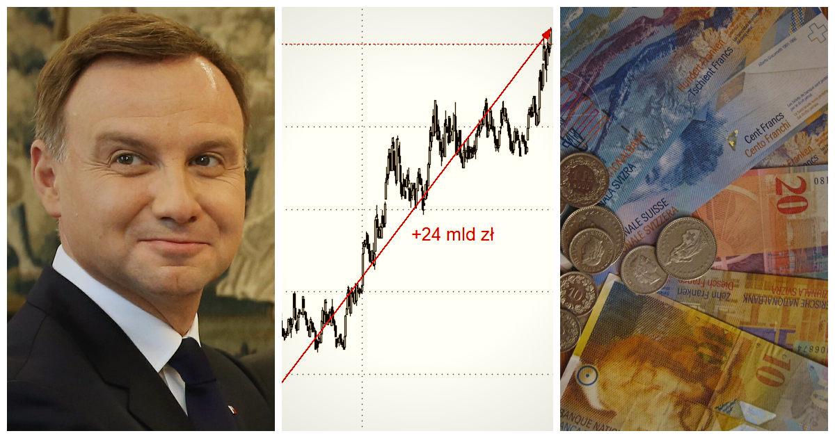 Prezydent Duda wciąż nie wywiązał się z drugiej obietnicy wyborczej, która może odcisnąć swoje piętno na wynikach finansowych banków. Chodzi oczywiście o przewalutowanie kredytów w CHF. Tutaj jednak na ratunek bankom przyszedł rynek. Tracący na wartości kurs franka szwajcarskiego względem złotego poprawia nastroje giełdowe akcjonariuszy banków.