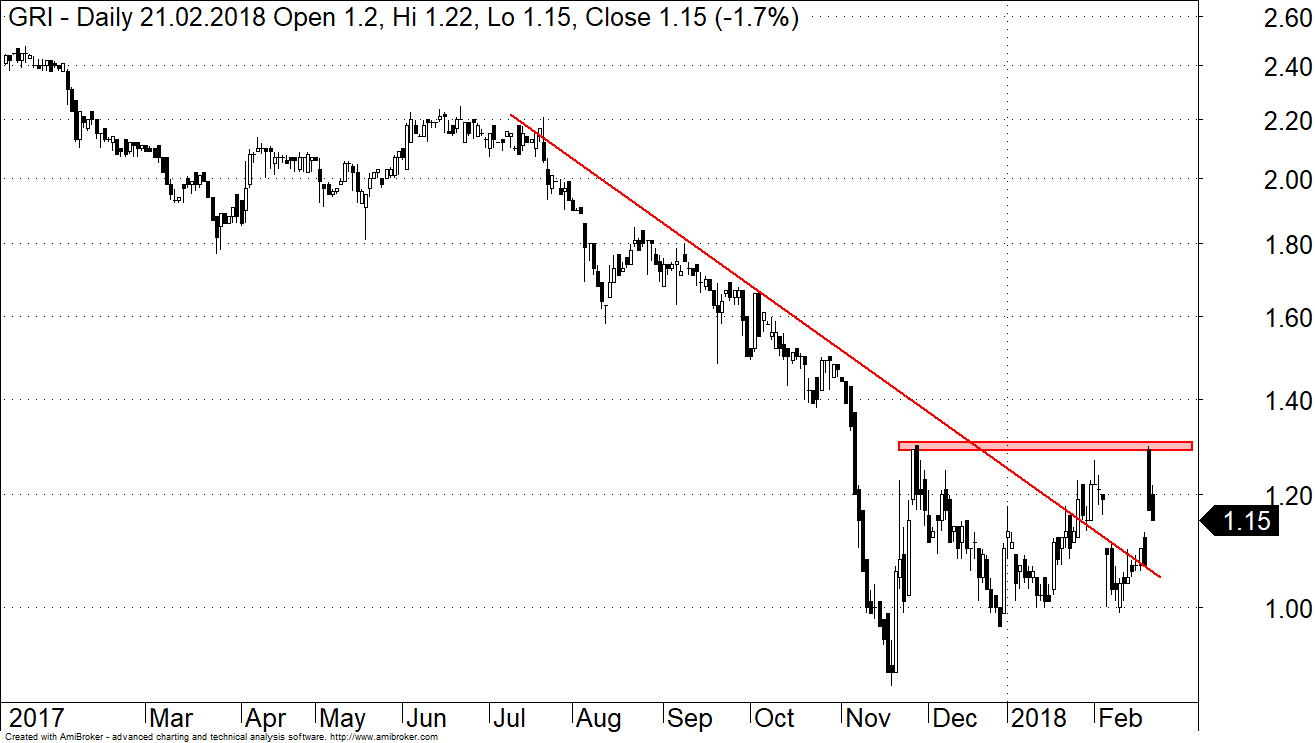 Rynek nie jest zbyt optymistyczny. Akcje Gino Rossi co prawda otworzyły się na kilkunastoprocentowych plusach, ale na koniec pierwszego dnia po komunikacie wzrost był jednocyfrowy. Aktualnie o pozytywnych sygnałach prowzrostowych będzie można mówić po zdecydowanym przebiciu poziomu 1,3 zł.