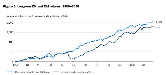 Poza tym inwestorzy lokujący kapitał na rynkach wschodzących powinni to robić ze szczególnie dużą ostrożnością. Z badań wynika, że zmienność jest na nich bardzo wysoka. Tutaj niezbędna jest daleko posunięta dywersyfikacja – wskazują prof. Dimson, prof. Marsh oraz dr Staunton.