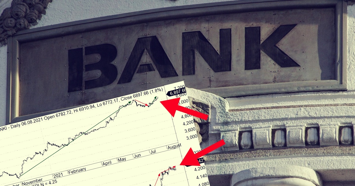 Indeks WIG-banki już raz powrócił do poziomów, przy których znajdował się przed wybuchem epidemii. Pierwszy atak na maksimum notowań z lutego 2020 roku miał miejsce w czerwcu 2021 roku.
