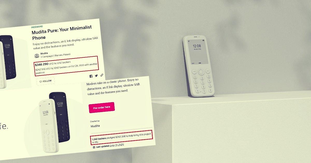 Startup Mudita w zeszłym roku zorganizował zbiórkę na Kickstarterze, która cieszyła się ogromnym zainteresowaniem inwestorów. Pozyskano ponad 1 mln zł na produkcję telefonu, który nie ma ani internetu ani aparatu. Kontynuując zbiórkę na innym portalu, IndieGoGo, spółka zebrała łącznie ponad 1,3 mln zł.