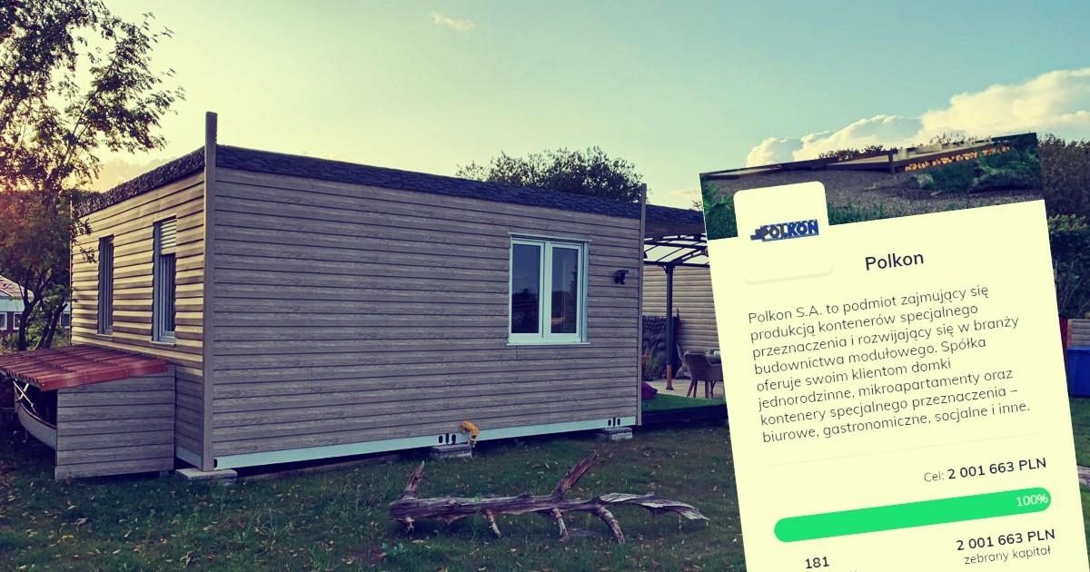 Spółka Polkon działa w segmencie budownictwa modułowego. W ofercie produktów posiada nie tylko kontenery specjalnego przeznaczenia, ale również mikro oraz makroapartamenty jak i domki jednorodzinne. Aby rozwijać swój biznes, spółka przeprowadziła emisję akcji w dwóch transzach. W pierwszej pozyskano 1,2 mln zł, natomiast w zaledwie dobę zakończyła się druga tura zorganizowana na platformie CrowdConnect. Tym samym spółka pozyskała 2 mln zł.