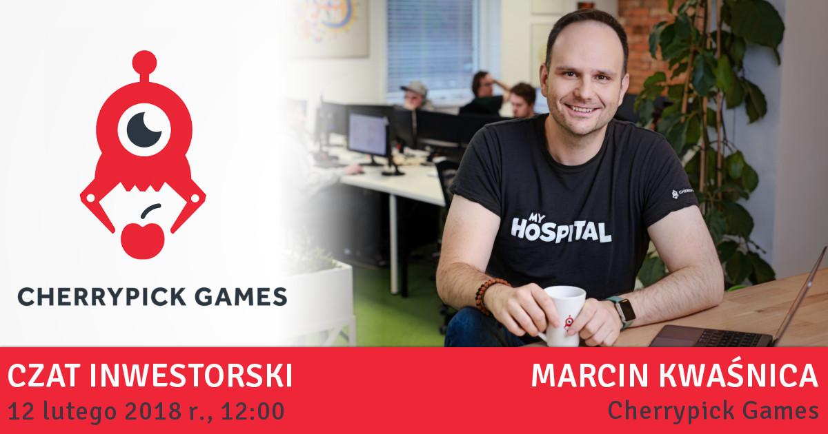 Cherrypick Games to obecnie już czwarta pod względem kapitalizacji spółka z branży gier na warszawskiej giełdzie. Jeszcze w tym roku planuje przeniesienie notowań na rynek główny GPW. Zapraszamy na czat z prezesem zarządu Cherrypick Games, Marcinem Kwaśnicą, z którym rozmawiać będziemy o strategii, planach i perspektywach rozwoju spółki. Spotkanie odbędzie się w poniedziałek, 12 lutego 2018 r. o godz. 12:00.