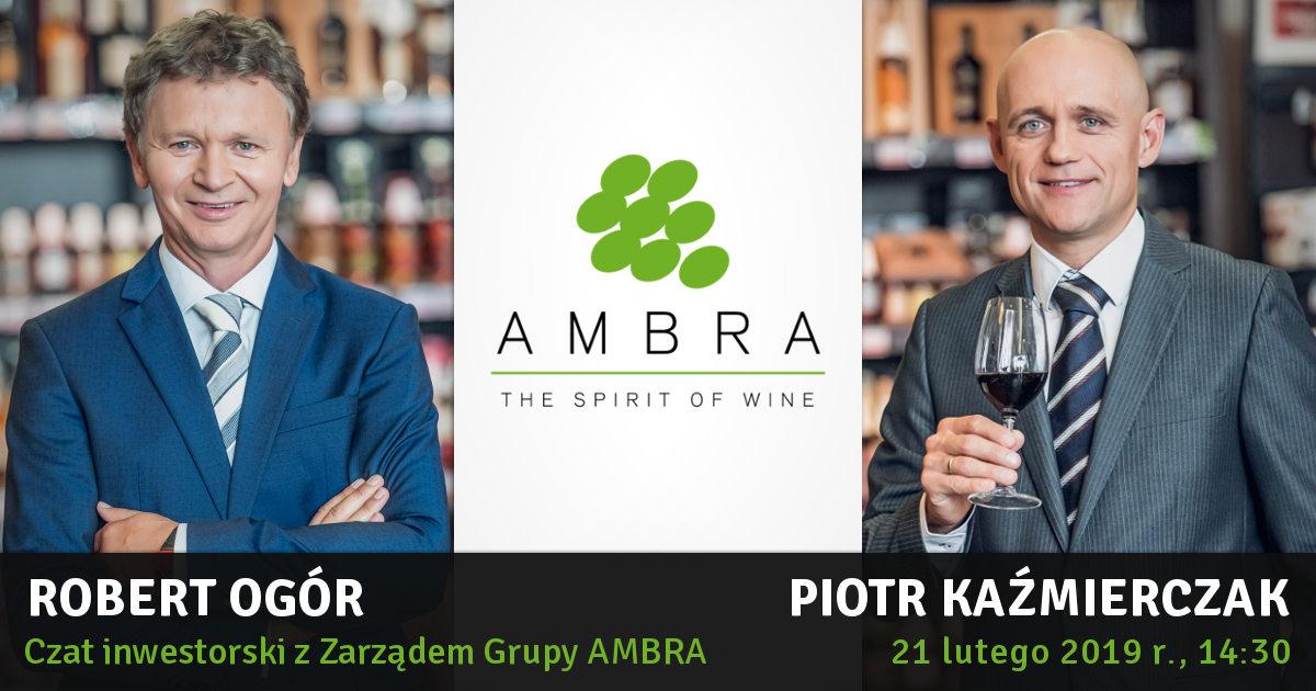 Zapraszamy na czat inwestorski z prezesem zarządu spółki, Robertem Ogórem oraz wiceprezesem, Piotrem Kaźmierczakiem, na którym rozmawiać będziemy o wynikach finansowych spółki, sytuacji na rynku alkoholi oraz o planach dalszego rozwoju spółki. Spotkanie odbędzie się w czwartek, 21 lutego 2019 r. o godz. 14:30. Zapraszamy do zadawania pytań już teraz.