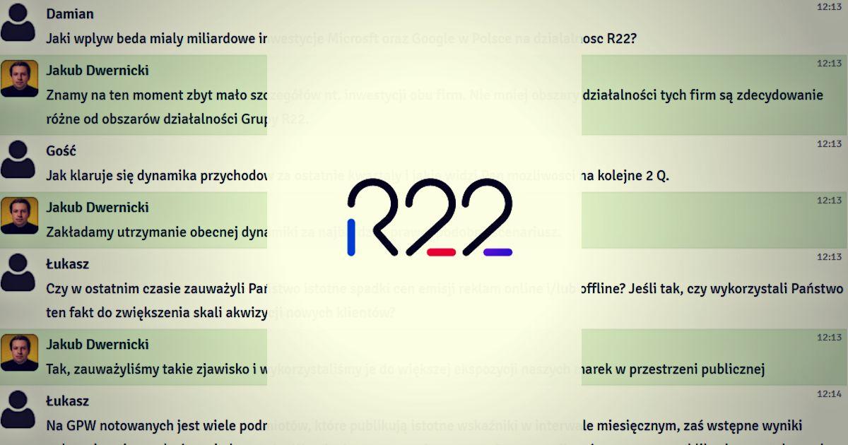 „Nasz biznes ma mocne fundamenty do dalszego wzrostu” - relacja z czatu z prezesem zarządu Grupy R22
