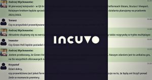 W czwartek, 14 stycznia 2020 r. odbył się czat inwestorski z prezesem zarządu Incuvo, Andrzejem Wychowańcem. Podczas spotkania rozmawialiśmy o debiucie na NewConnect. Inwestorzy zadawali również pytania o wersję Green Hell w wirtualnej rzeczywistości oraz plany wydawnicze.