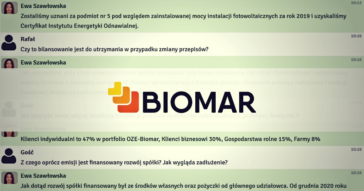„OZE-Biomar to przede wszystkim projektowanie i budowa instalacji PV dla szerokiego rynku” - relacja czatu z prezes zarządu spółki