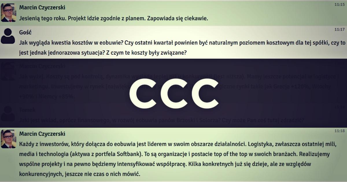 „Jesteśmy bardzo zadowoleni z wyników w drugim kwartale. Pokazują zmianę, która odbyła się w Grupie CCC” - relacja czatu z prezesem zarządu, Marcinem Czyczerskim