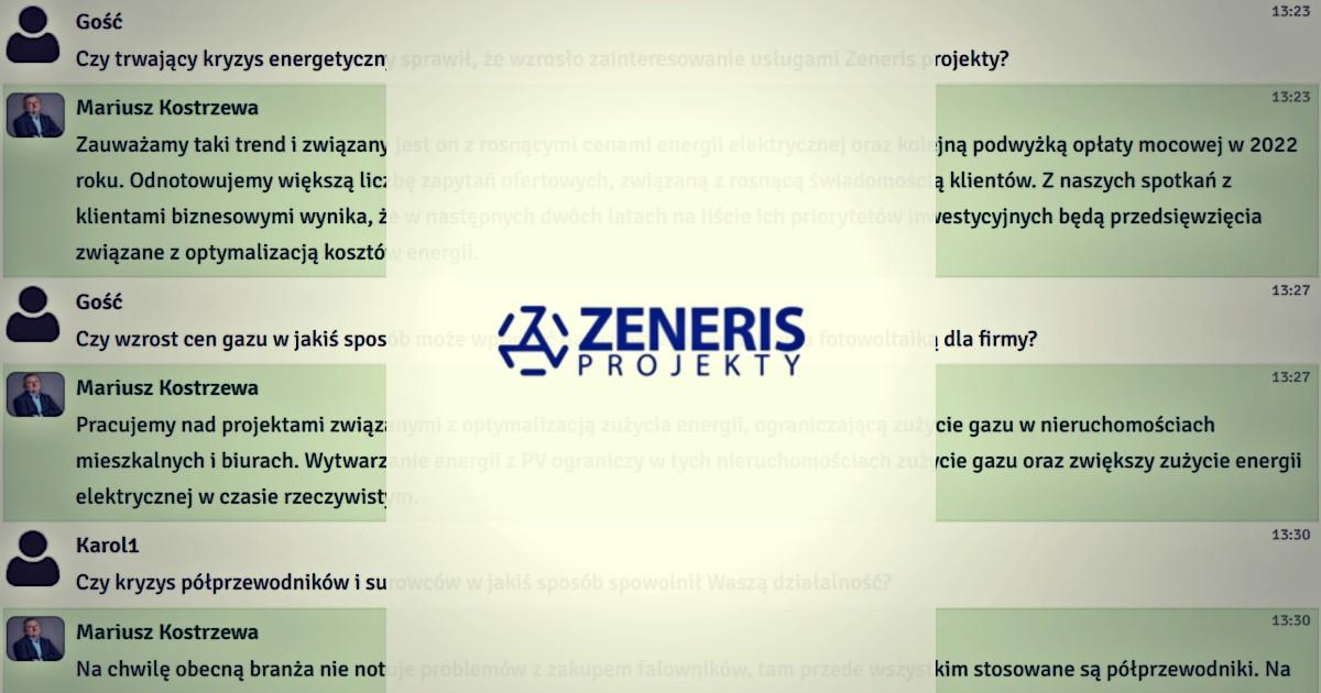 „Historycznie Zeneris Projekty generuje większość rocznych przychodów w III i IV kwartale” - relacja czatu z prezesem zarządu Zeneris Projekty