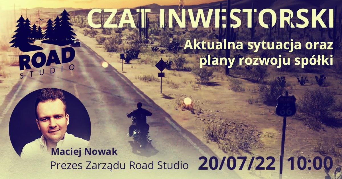 O aktualnej sytuacji Road Studio oraz perspektywach dalszego rozwoju będzie można porozmawiać z prezesem zarządu, Maciejem Nowakiem. Spotkanie odbędzie się w środę, 20 lipca 2022 r. o godz. 10:00.