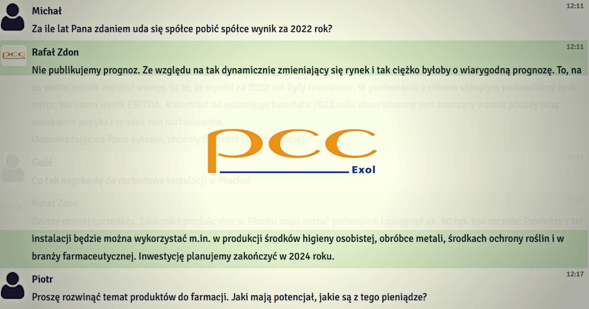 „W porównaniu z rokiem ubiegłym podwoiliśmy zysk netto, tak samo wynik EBITDA” - relacja czatu z wiceprezesem zarządu PCC Exol