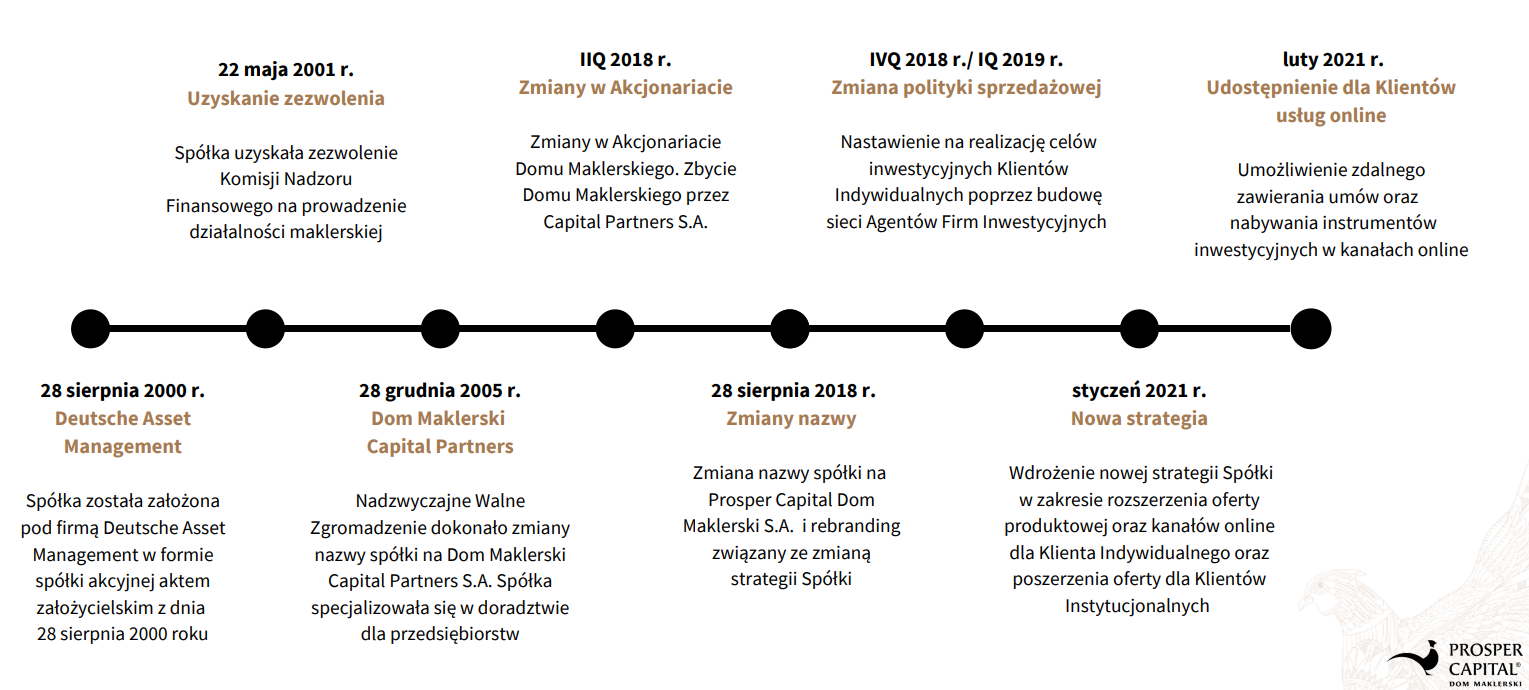 Prosper Capital DM specjalizuje się w pozyskiwaniu oraz pomnażaniu kapitału dla klientów dostarczając im rozwiązania rynku kapitałowego. Ma kilkunastoletnie doświadczenie w zakresie oferowania akcji spółek oraz ich wprowadzaniu na NewConnect i główny rynek GPW.