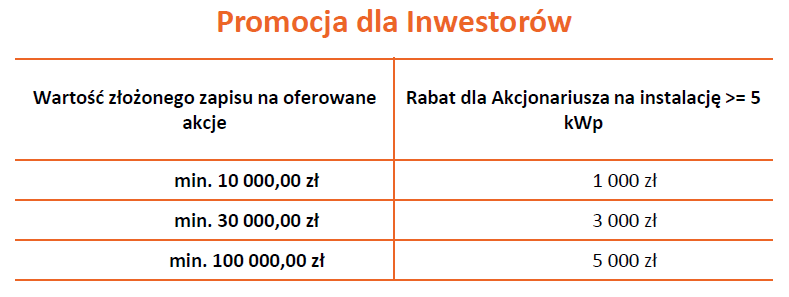 Spółka oferuje też zachęty dla nowych inwestorów w postaci rabatu zależnego od wielkości zapisu na akcje.