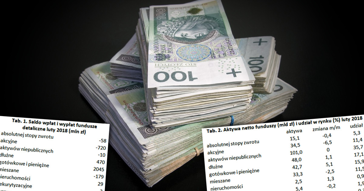 Oto główne fakty o napływach i odpływach środków do polskich funduszy inwestycyjnych w lutym 2018: