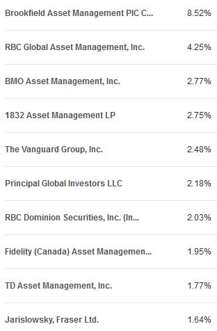 1. Najwięksi instytucjonalni akcjonariusze Brookfield Asset Management