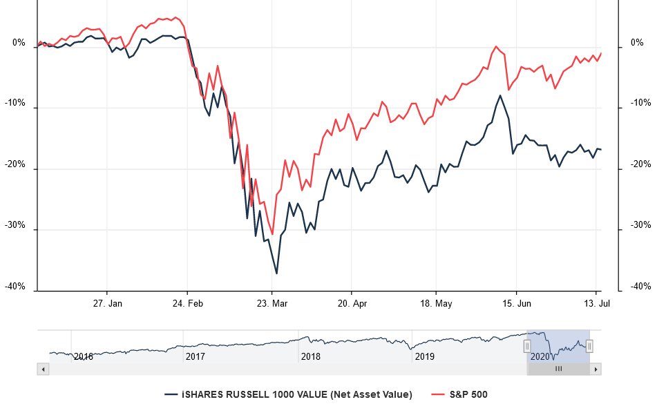 Notowania iShares Russell 1000 Value ETF na tle S&P500