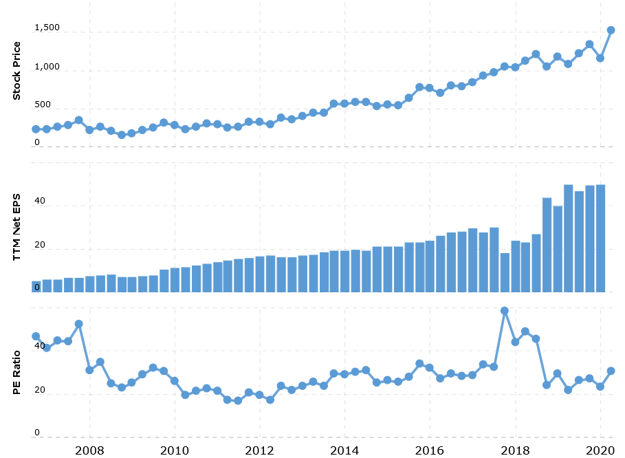 Alphabet – cena akcji, zysk na akcję oraz wskaźnik C/Z