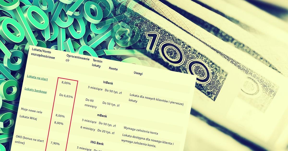 Spośród wybranych przez nas ofert, należy przyjrzeć się Lokacie na start inBanku. Ten 3-miesięczny depozyt oprocentowany jest na 8,00% w skali roku. Oferta skierowana jest do nowych klientów i wymaga wpłacenia nowych środków.