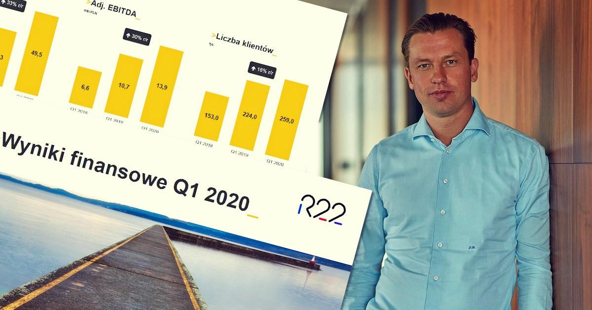 I kwartał 2020 roku był dla Grupy R22 rekordowy. Spółka odnotowała wzrost przychodów o 33%, do 49,5 mln zł oraz znormalizowanej EBITDA o 30%, do 13,9 mln zł. Zysk netto wyniósł 5,3 mln zł. Ponadto, w wyniku pandemii COVID-19, grupa widzi znaczny wzrost zainteresowania klientów rozwiązaniami wspierającymi komunikację online. Obecnie R22 obsługuje 260 tys. klientów.