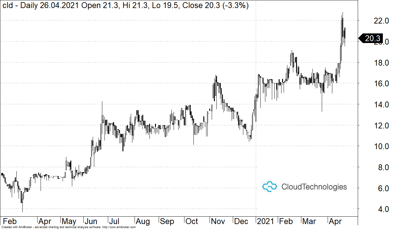 Warto dodać, że spółka w 2020 roku osiągnęła 50,1 mln zł przychodów, tym samym zwiększając zysk spółki netto o 5,6 mln zł. 30 kwietnia Cloud Technologies planuje opublikować raport roczny.