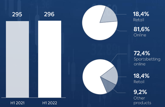Termin NGR oznacza wartość zakładów zawartych przez klientów, pomniejszona o wypłacone wygrane i podatek od gier. W I półroczu br. wartość zawartych zakładów przez klientów bukmachera wyniosła 2,189 mld zł, przed rokiem było to 2,222 mld zł. Przy czym w I połowie 2021 wynik został „podpompowany” Mistrzostwami Europy w piłce nożnej, a tegoroczne Mistrzostwa Świata w Katarze rozpoczną się pod koniec listopada 2022.