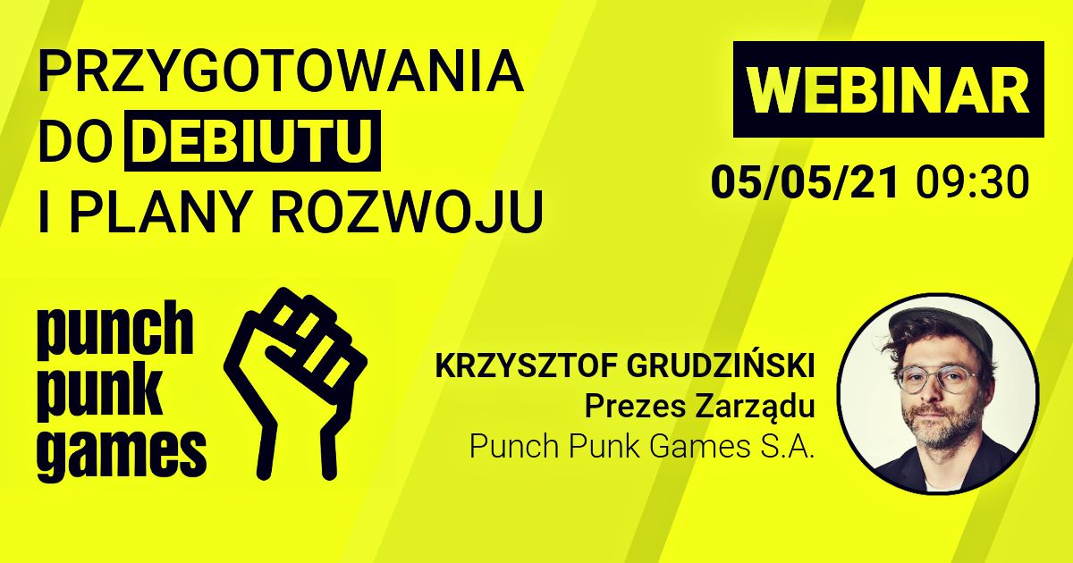 W środę, 5 maja 2021 roku o godz. 09.30 zapraszamy na webinar z prezesem zarządu Punch Punk, Krzysztofem Grudzińskim. Podczas spotkania porozmawiamy o planach debiutu na NewConnect oraz zaplanowanych premierach gier. Inwestorzy będą mogli zadawać pytania podczas webinaru.