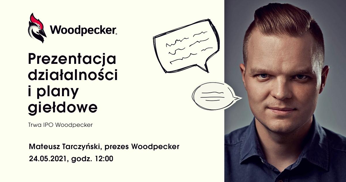 W poniedziałek, 24 maja 2021 roku o godz. 12:00 zapraszamy na webinar z prezesem zarządu Woodpecker, Mateuszem Tarczyńskim. Podczas spotkania zostanie zaprezentowana działalność i model biznesowy firmy oraz szczegóły oferty publicznej akcji. Inwestorzy będą mogli zadawać pytania podczas webinaru.