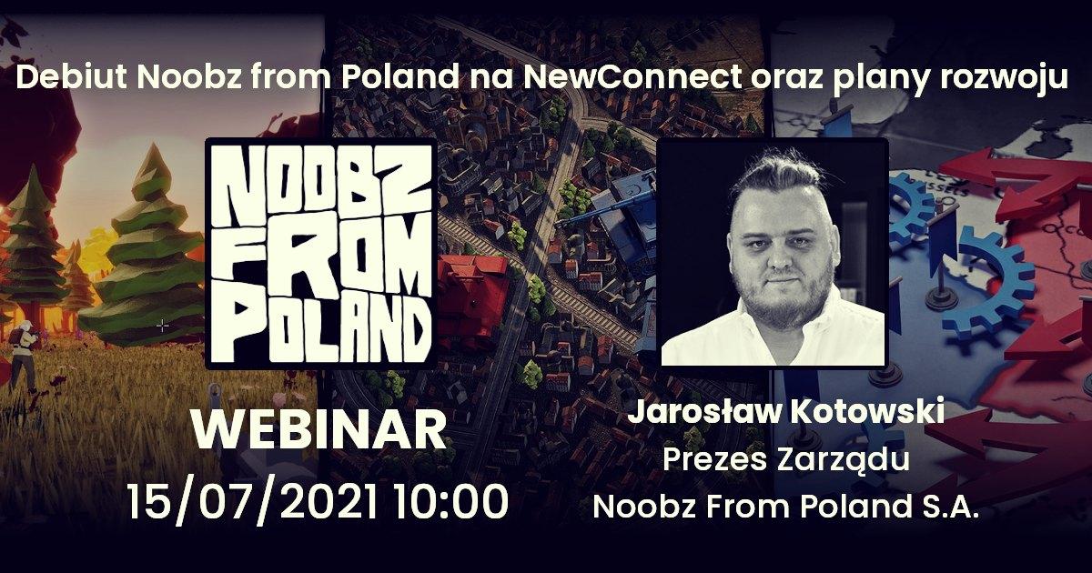 Warszawskie studio 13 lipca zadebiutowało na rynku NewConnect. W czwartek, 15 lipca 2021 roku o godz. 10:00 zapraszamy na webinar z prezesem zarządu Noobz from Poland, Jarosławem Kotowskim. Podczas spotkania zostaną omówione plany rozwoju spółki oraz debiut na rynku NewConnect. Inwestorzy będą mogli zadawać pytania podczas webinaru.