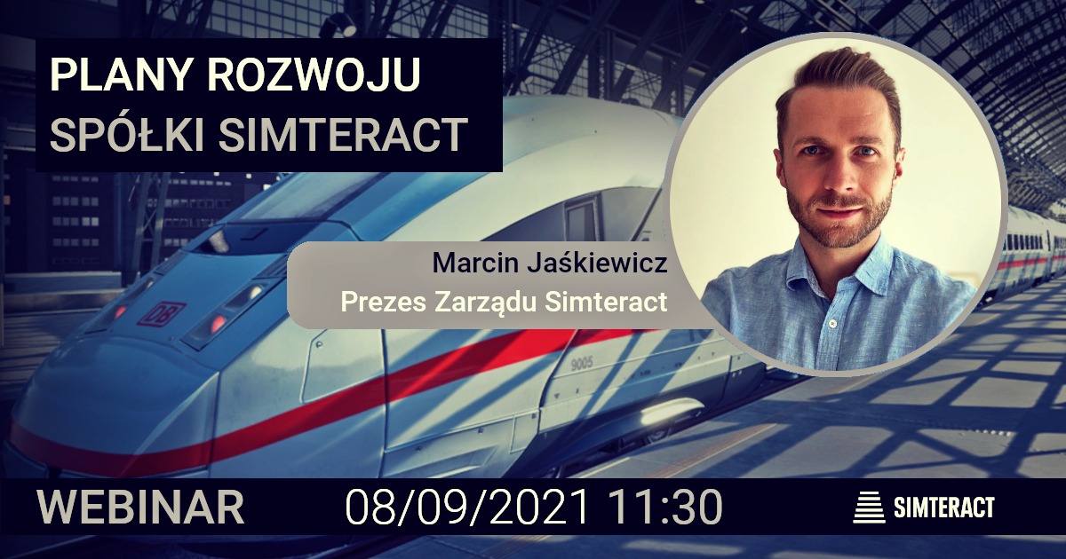 W środę, 8 września 2021 roku o godz. 11:30 zapraszamy na webinar z prezesem zarządu Simteract, Marcinem Jaśkiewiczem. Podczas spotkania zostaną omówione plany rozwoju spółki oraz postęp prac nad grą Train Life: A Railway Simulator. Inwestorzy będą mogli zadawać pytania podczas webinaru.