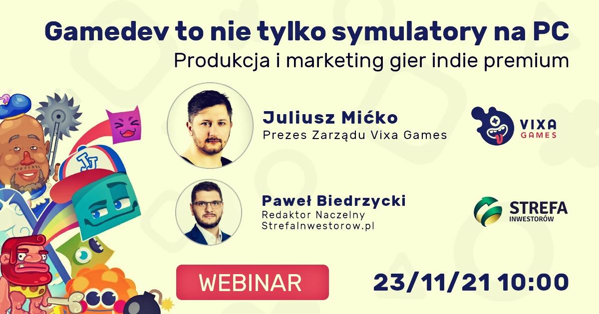 Gamedev to nie tylko symulatory na PC. Produkcja i marketing gier indie premium [Webinar z prezesem Vixa Games i Redaktorem Naczelnym Strefy Inwestorów]