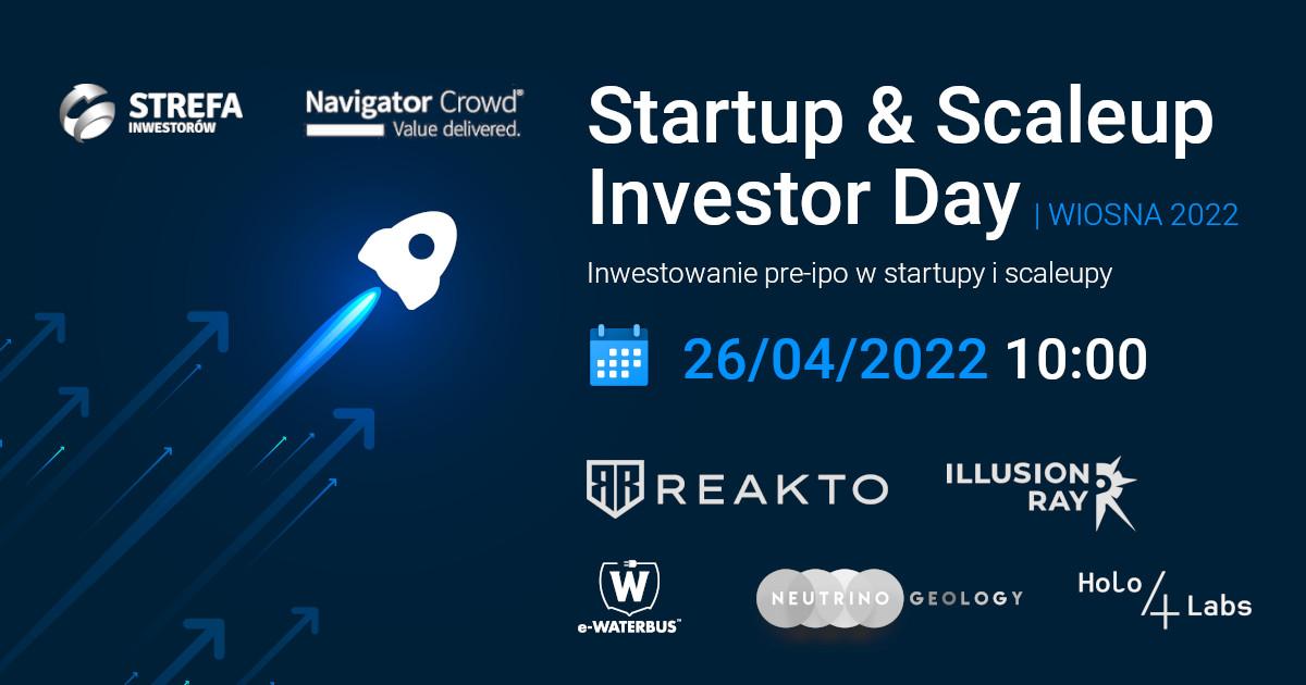 Finansowanie społecznościowe stało się popularną metodą startu działalności dla młodych spółek. W pandemicznym 2020 roku rynek crowdfundingu przeżywał znaczące ożywienie, jednak teraz ten entuzjazm opadł. Co dalej z inwestowaniem w pre-ipo w startupy i scaleupy? Jakie projekty mają szanse na rozwój i wzrost? Podczas konferencji „Inwestowanie w Startup & Scaleup - wiosna 2022” postaramy się udzielić odpowiedzi na te pytania. Ponadto, swoje modele biznesowe oraz plany rozwoju przedstawi 5 spółek: REAKTO, Holo4Labs, Illusion Ray, E-Waterbus oraz Neutrino.
