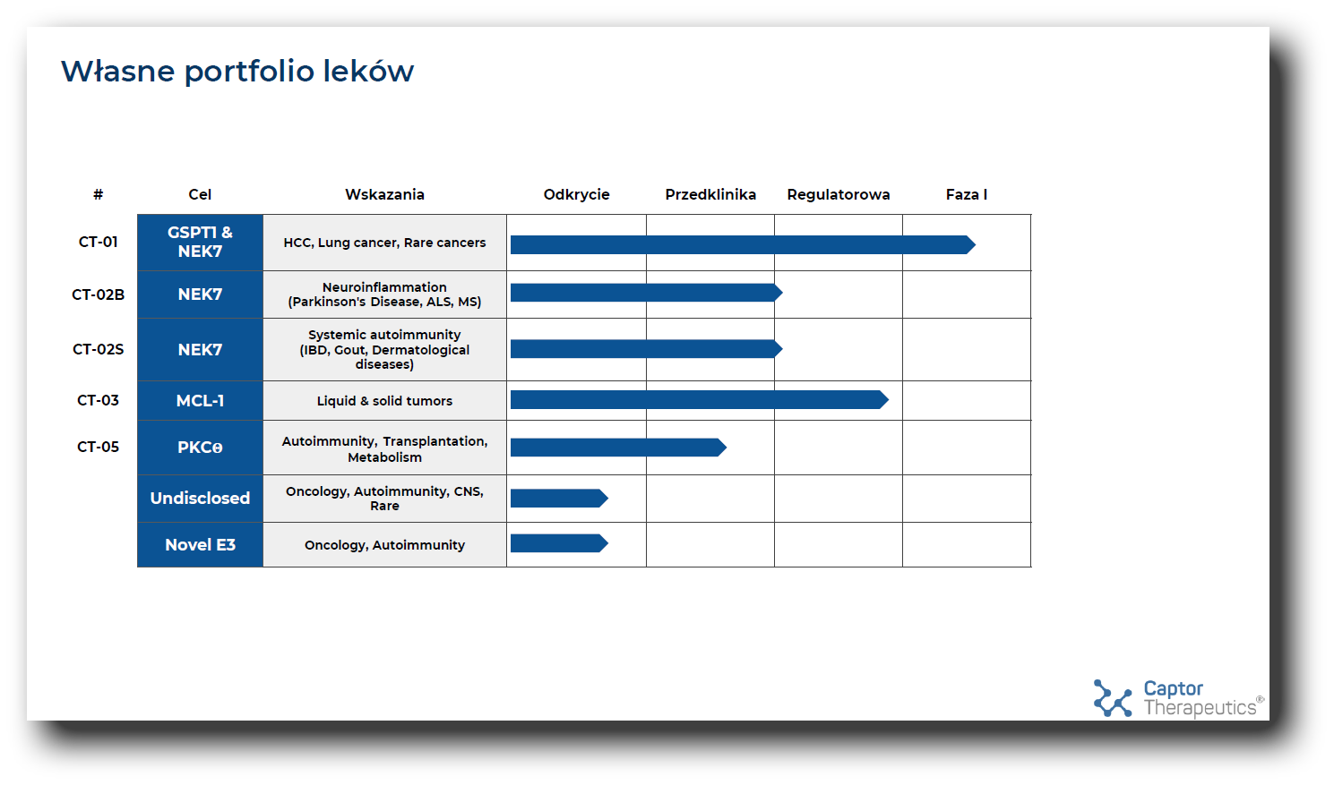 Kluczowe projekty w portfolio Captor Therapeutics