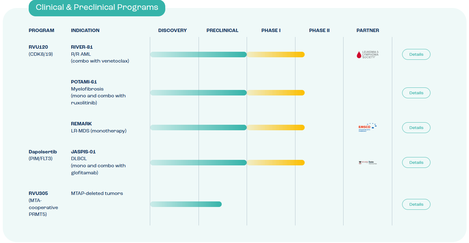 Pipeline projektów klinicznych i przedklinicznych Ryvu Therapeutics